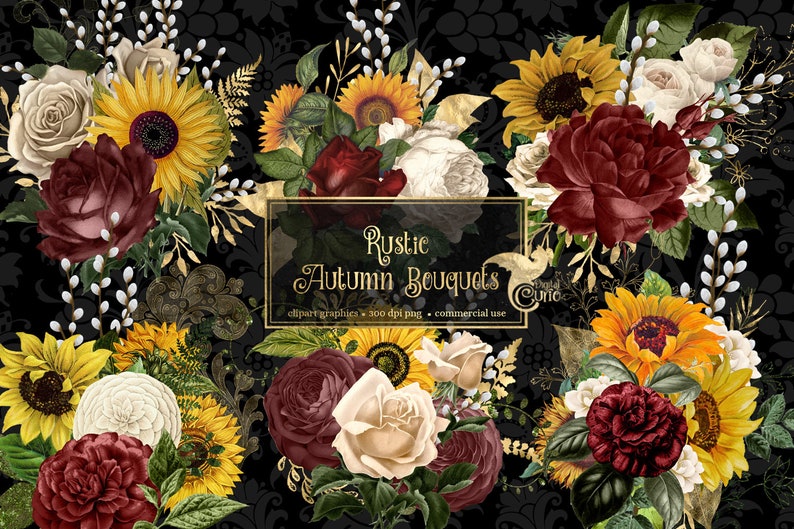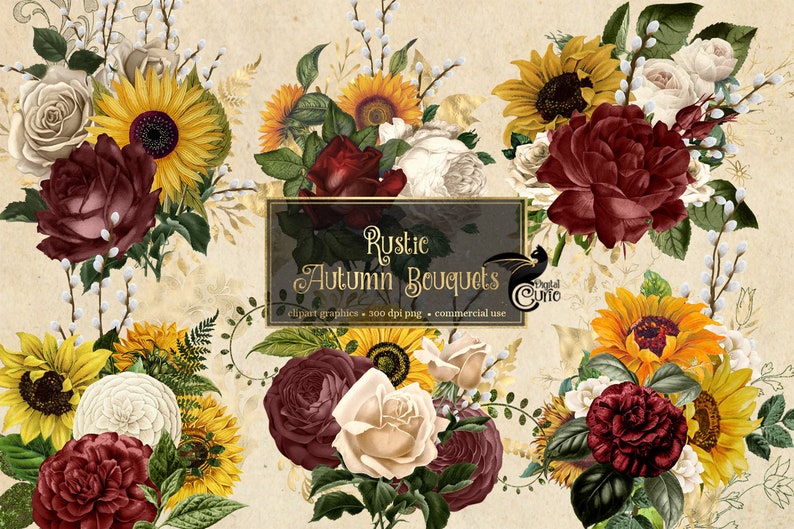 Antique Illustrations Of Yellow Sunflowers And Roses In Png Format