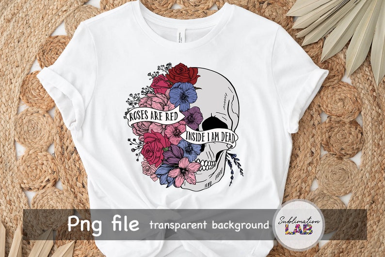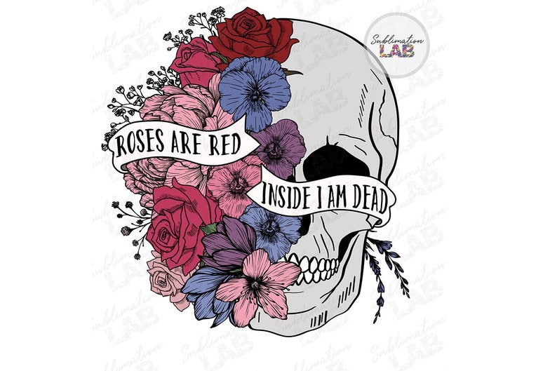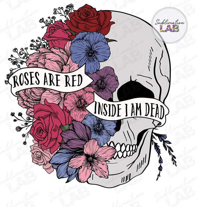 Roses Are Red Floral Skull Skeleton Valentines Day Digital Download Tshirt Design